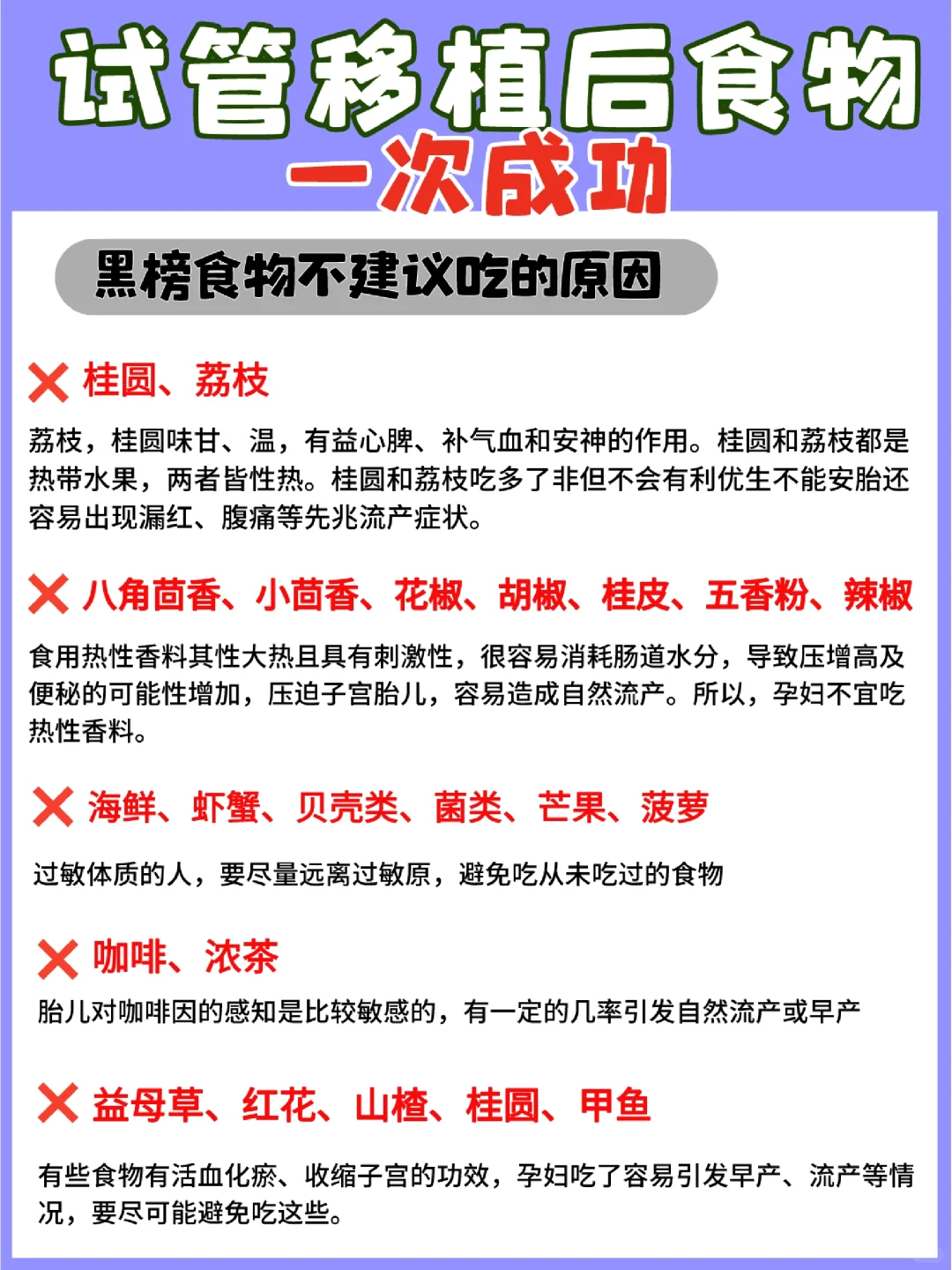 ⬇️今天给姐妹们整理一份试管婴儿移植后食谱,给大家解答一下,什么能吃❓什么不能❓